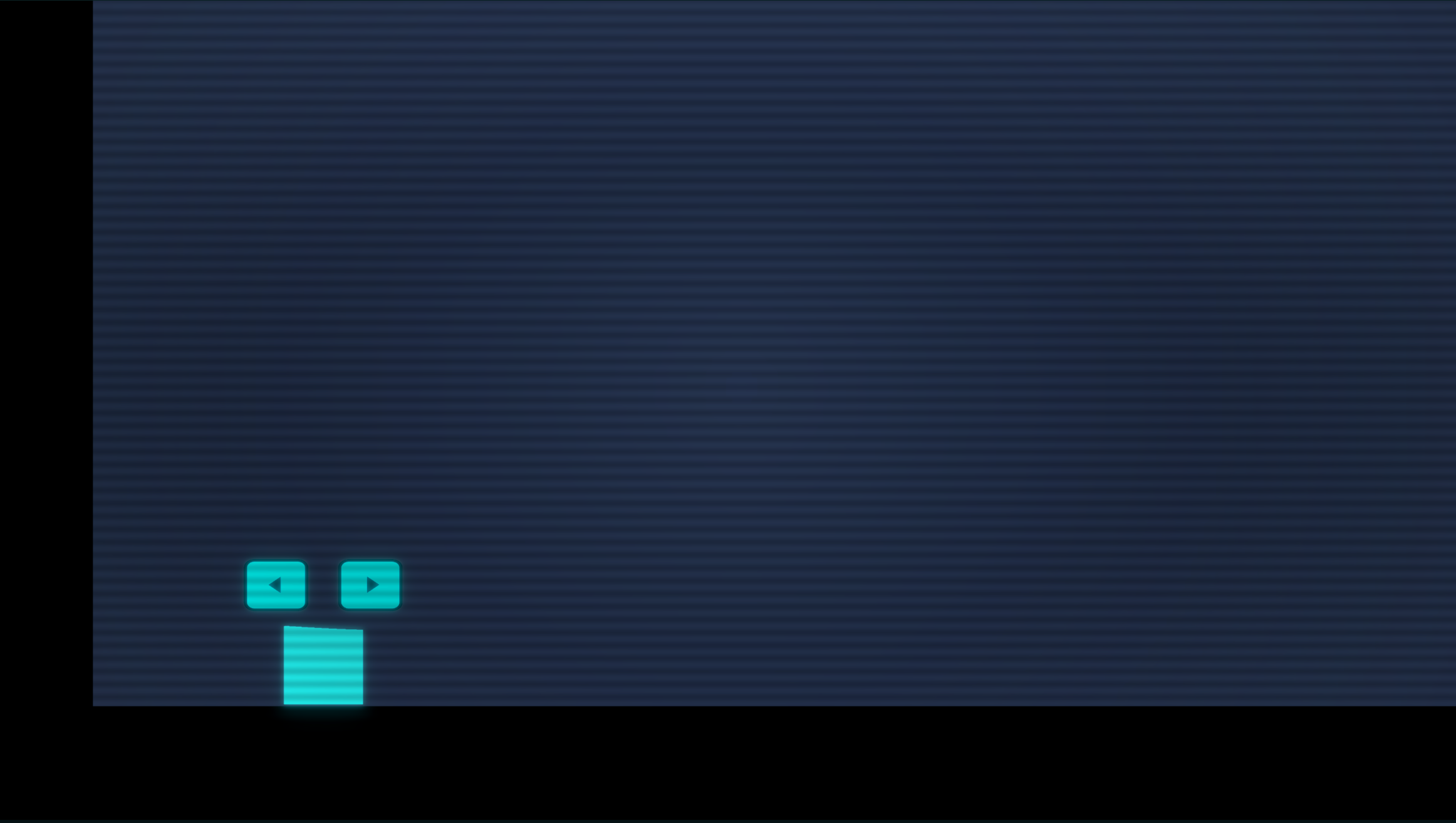 - Minimalist 2D design with high contrast (neon blues on black).